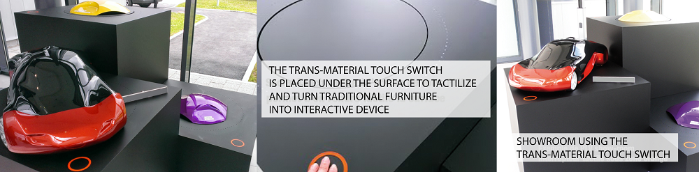 Sensovery proposes an invisible trans-material sensitive switch that operates through the insulating materials such as wood, MDF, chipboard, laminate, resin, glass, plaster, stone, slate, corian®, honeycomb thin thick composites. A gentle caress to the surface and the light comes on. Secret Touch can control any electrical system such as door mechanism, alarm, doorbell, animation, etc. Secret Touch is available in two versions: push button and on / off button. | Do not wait, integrate Secret Touch to your layout